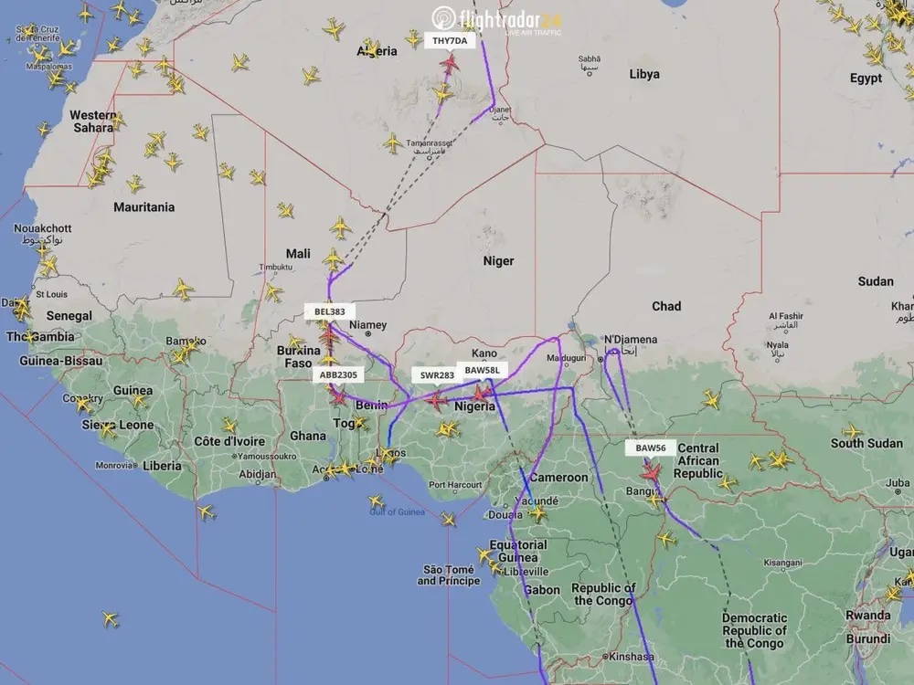 According to FlightRadar24, this restriction means airlines that used to fly to countries like South Africa and Ghana via Niger skies now have to go around adding hours of flight time and up to 600 or more miles to the already long journeys.